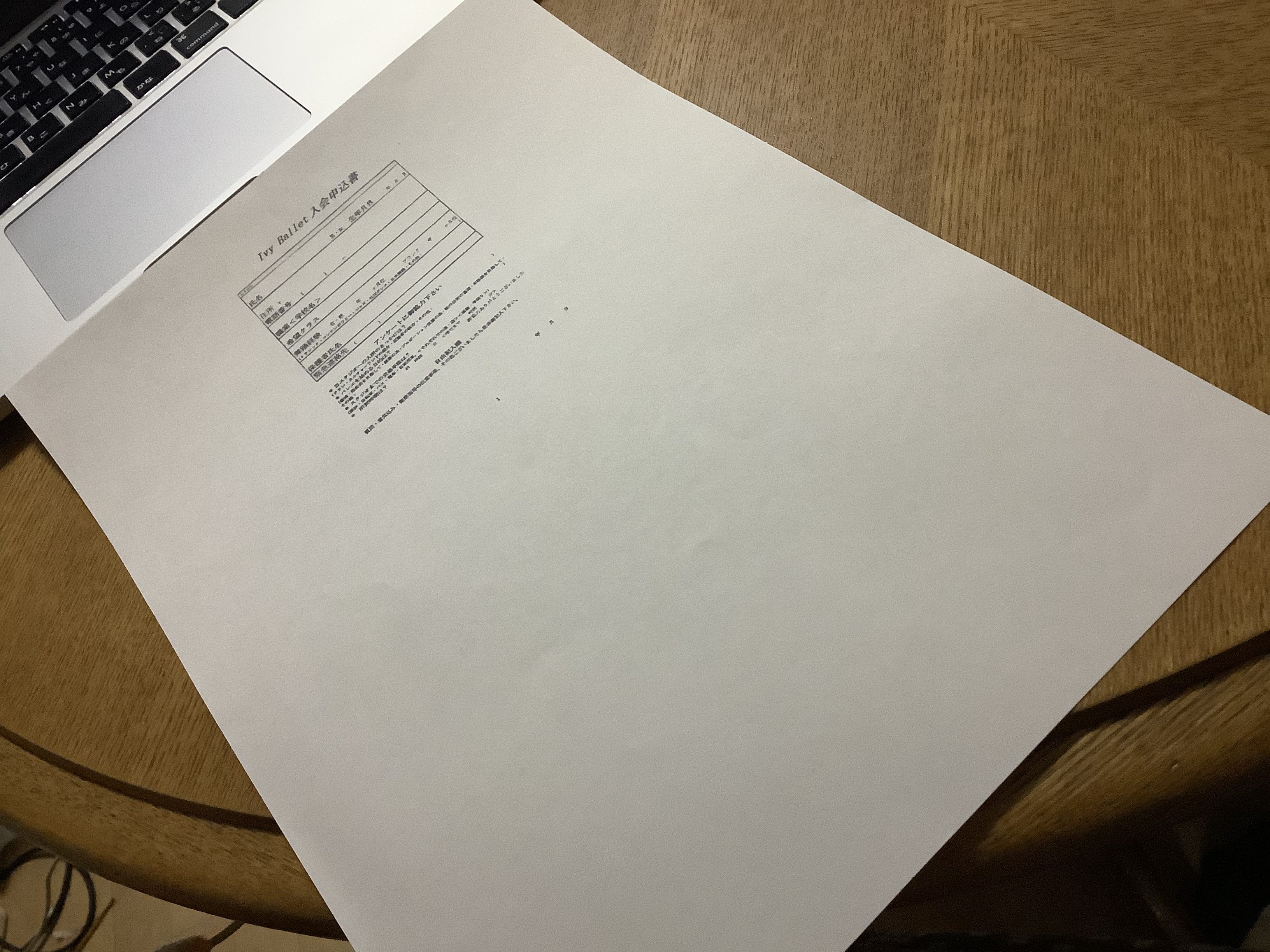 入会申込書を印刷していたら