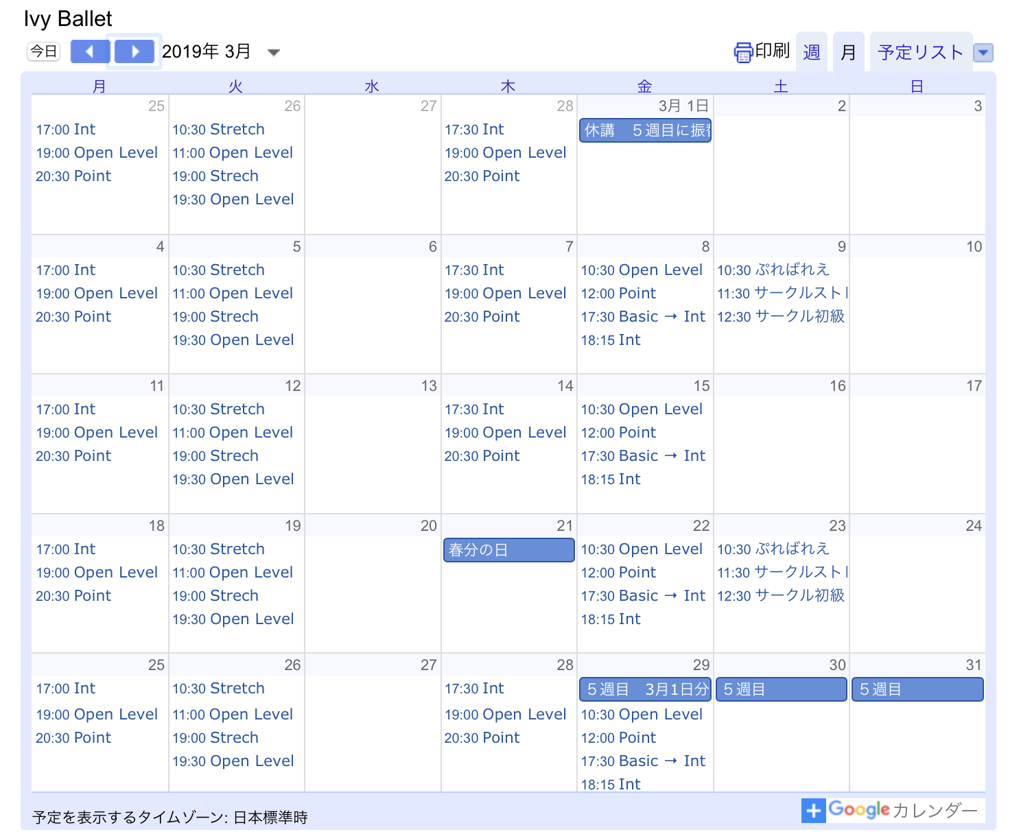 Menu | Topics | お知らせ | レッスンカレンダー Byivyballet 2019年2月24日 レッスンカレンダー 2019 02 24 3月からのカレンダーを更新しました。 3月1日 休講 → 3月29日 振替 となります。 お間違えのないようお気をつけください。